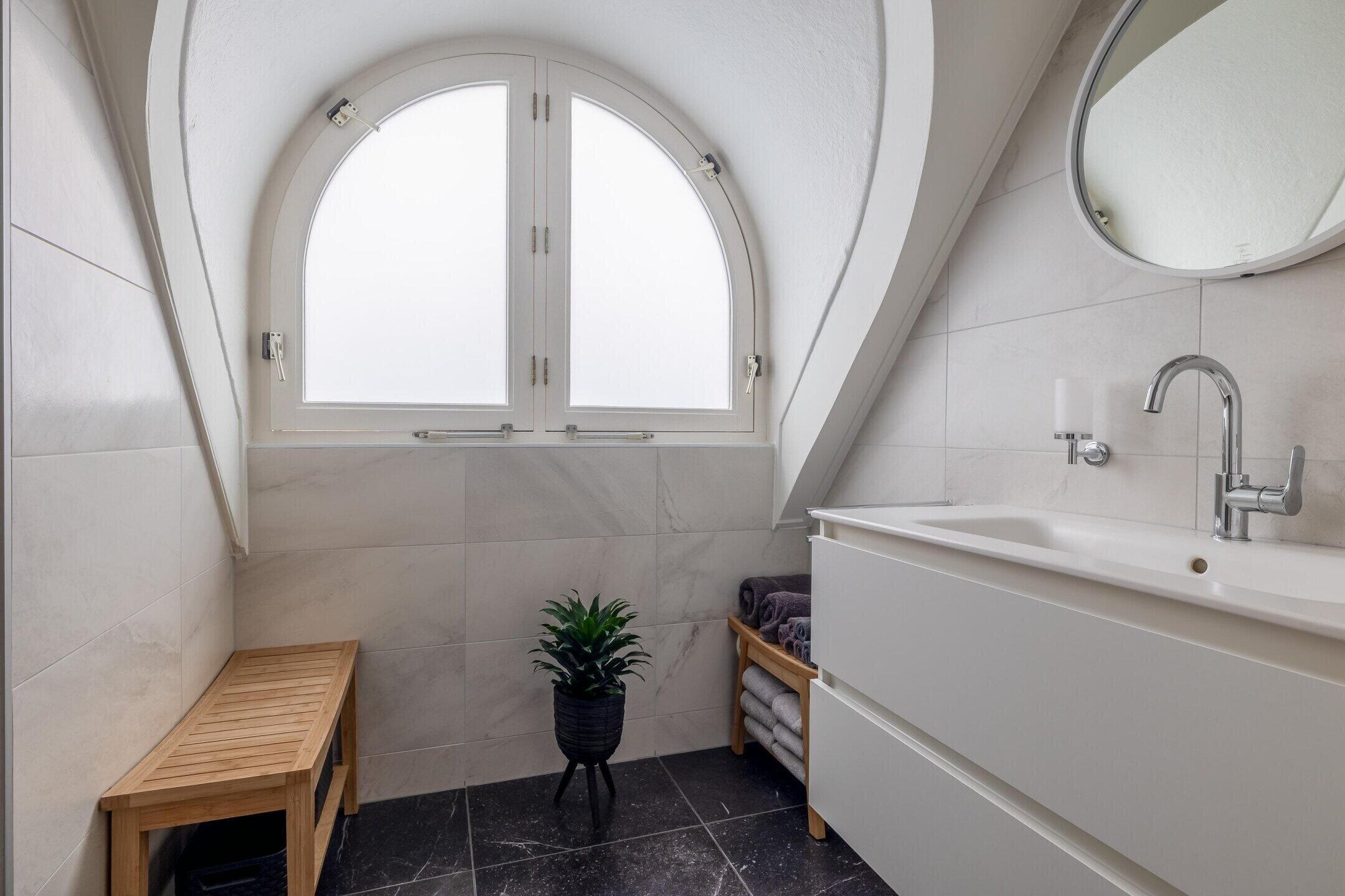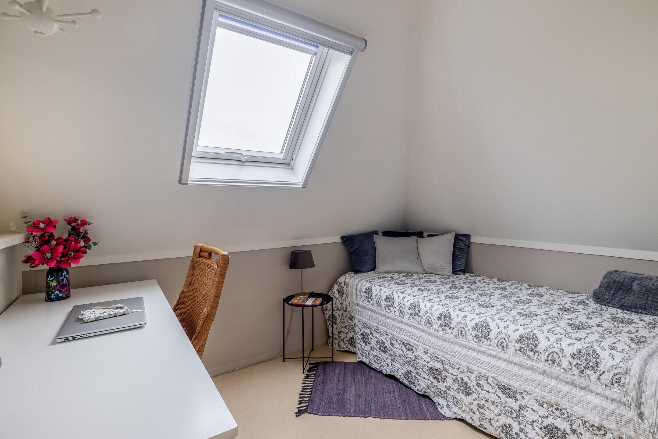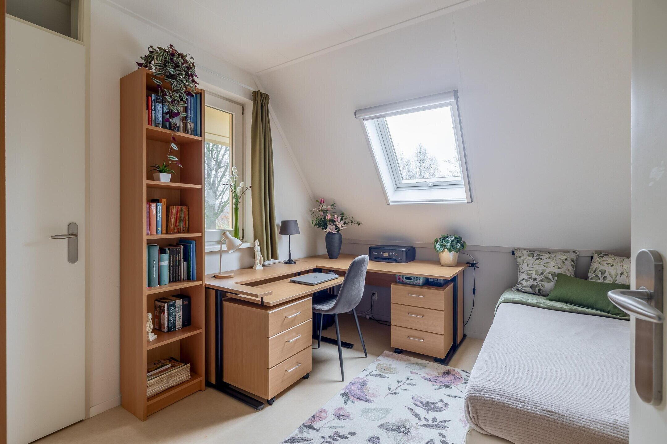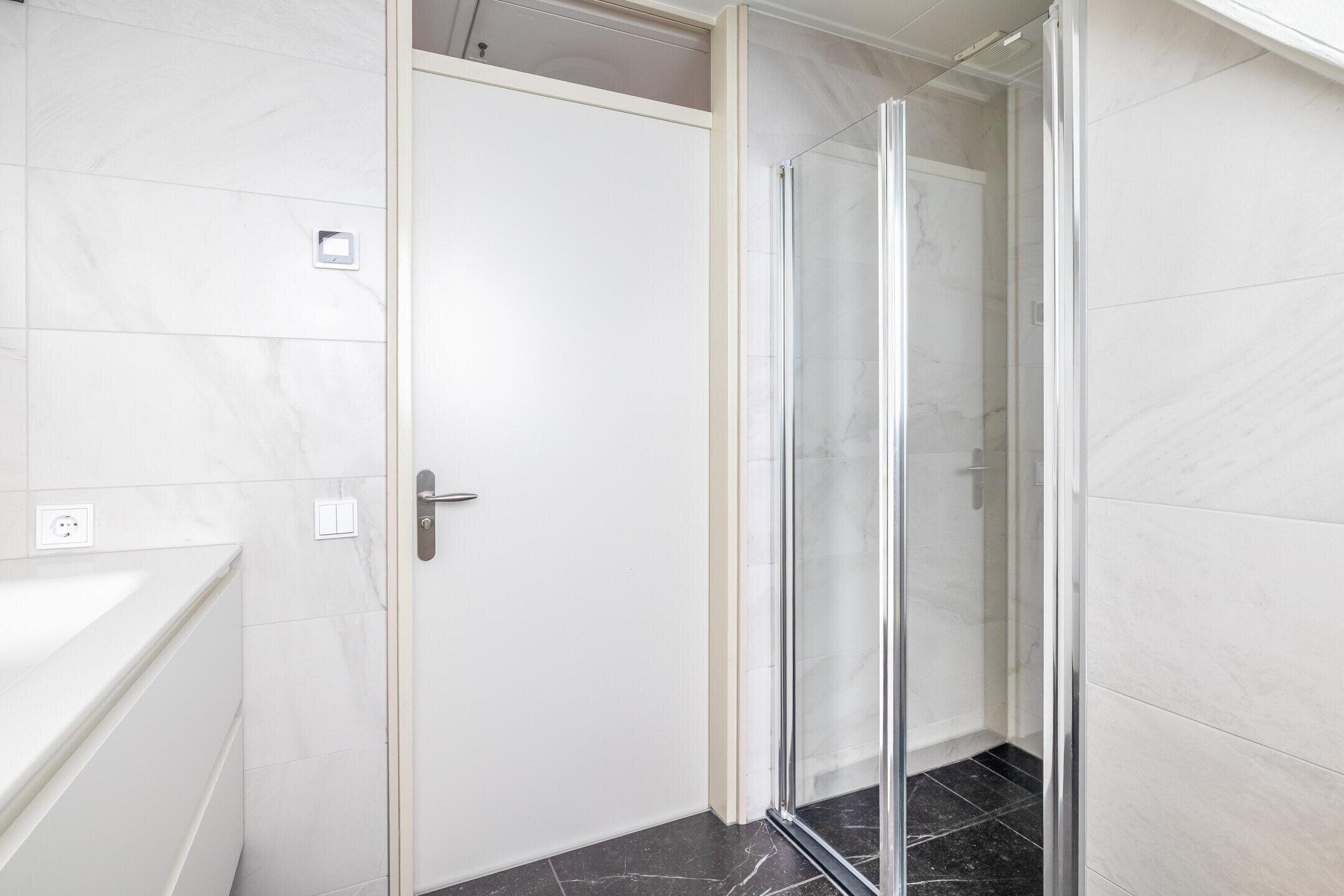 Via de open houten trap in de hal bereik je de verdieping met vide. Hier zijn drie fijne slaapkamers, een luxe badkamer en een separaat toilet. De volledig betegelde, nieuwe badkamer (2025) biedt comfort met een inloopdouche met glazen deur , een wastafelmeubel en vloerverwarming. Dankzij het dubbele raam in de dakkapel geniet je van meer ruimte, natuurlijk licht en goede ventilatie.